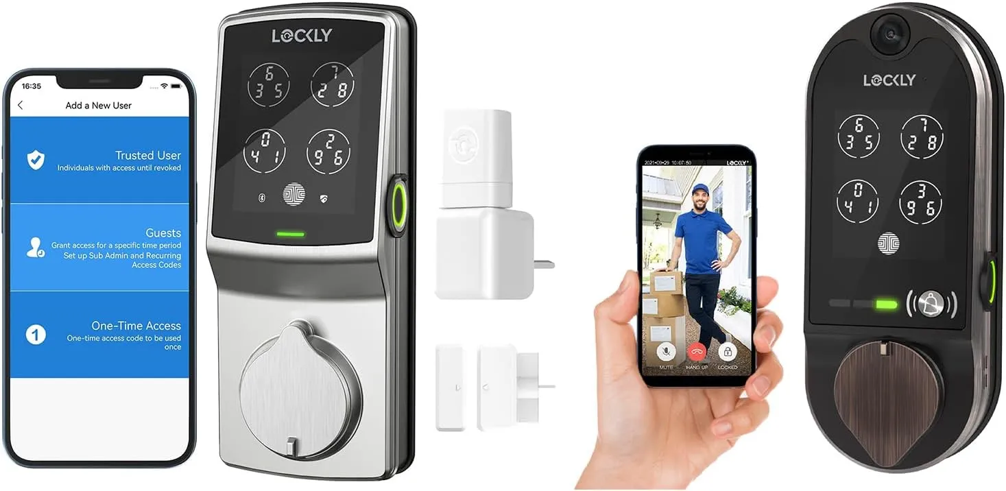 - Lockly Door Locks with Keypads - The patented peek-proof PIN Genie keypad has four virtual buttons with three different numbers per button which change after each use by mixing the location of your PIN number, making it impossible for someone to guess your code.